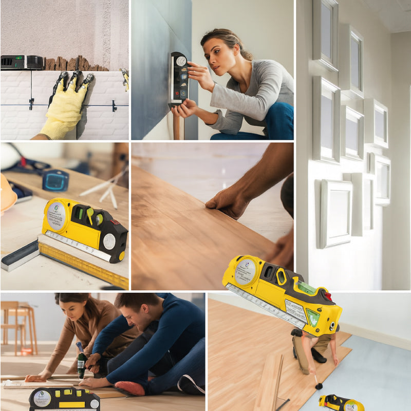 - 💡 Láser de precisión: proyecta una línea visible para alinear cuadros, repisas, TV, puertas y más.